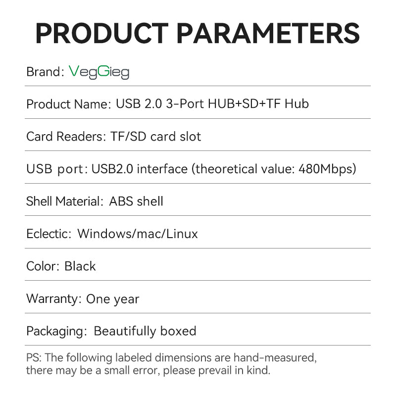 The VegGieg 6-Port USB Hub with SD/TF Card Reader is the ultimate all-in-one expansion solution for your PC or laptop....