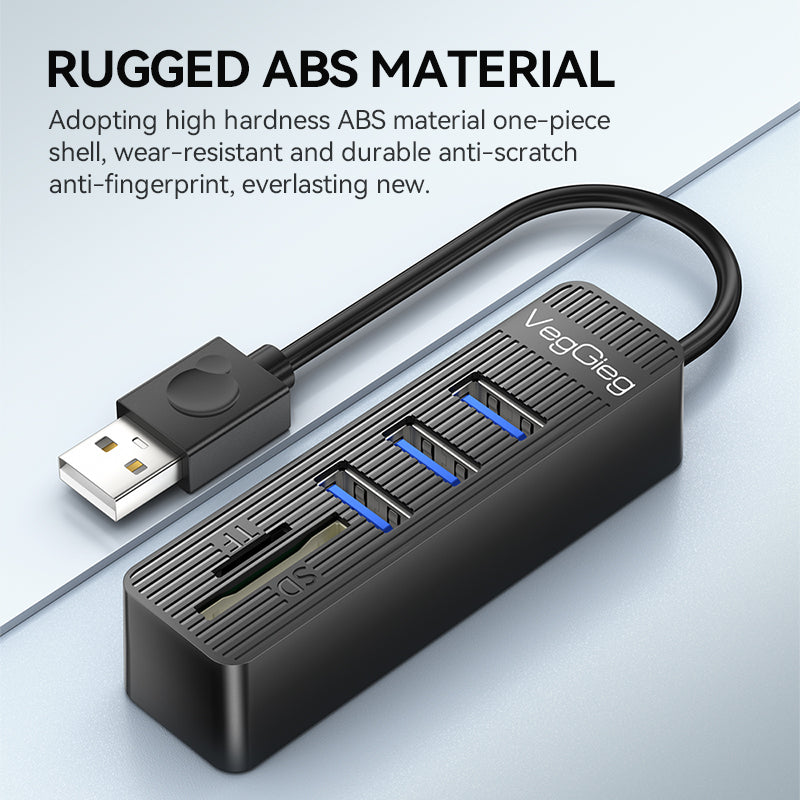 VegGieg 6-Port USB 2.0 Hub with SD/TF Card Reader | 1m Cable | High-Speed Data Transfer | Compact & Durable