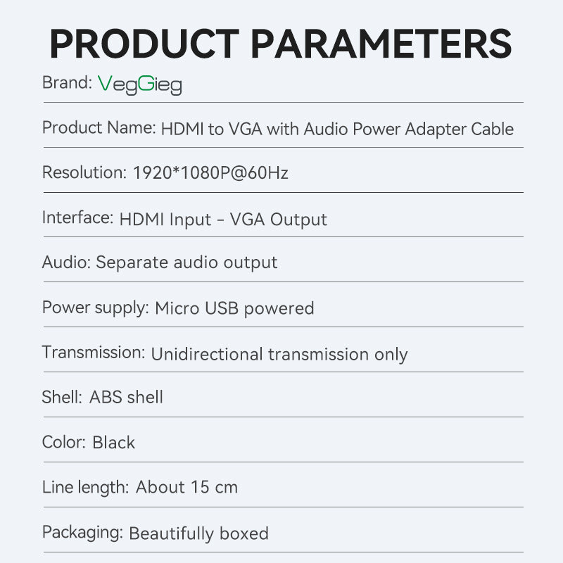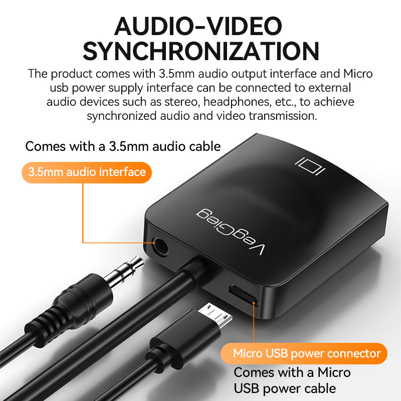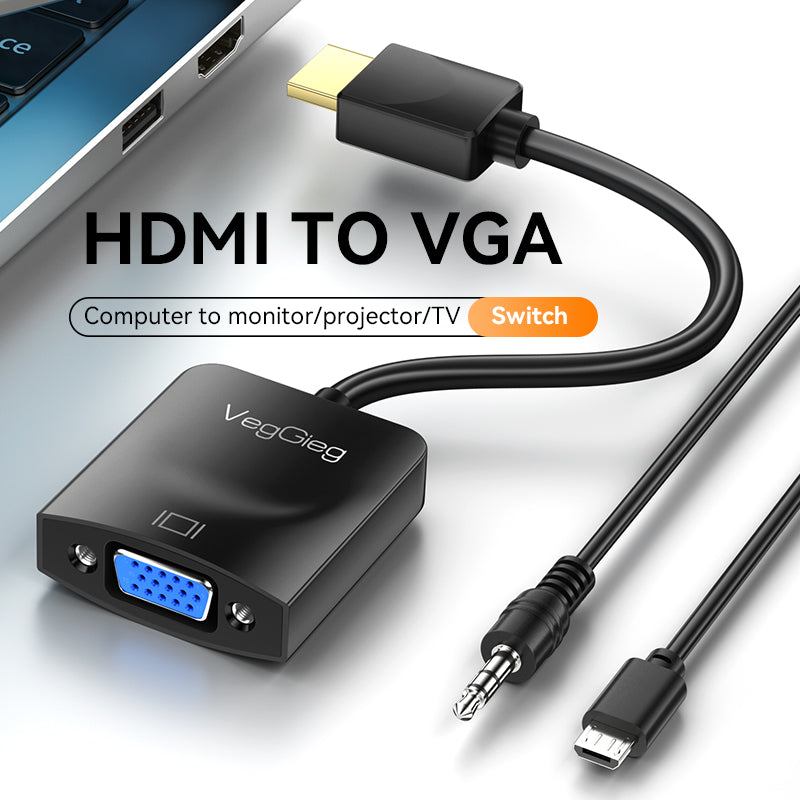 Connect your HDMI-enabled devices to legacy VGA displays with the VegGieg HDMI to VGA Adapter, available in two variants: