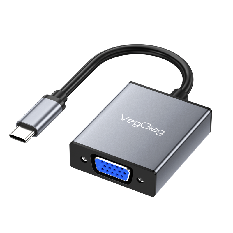 VegGieg Type-C to VGA Adapter | 1080P @ 60Hz | USB-C to VGA Converter for Laptop, MacBook, iPad, Android Phone | Plug & Play | Aluminum Alloy