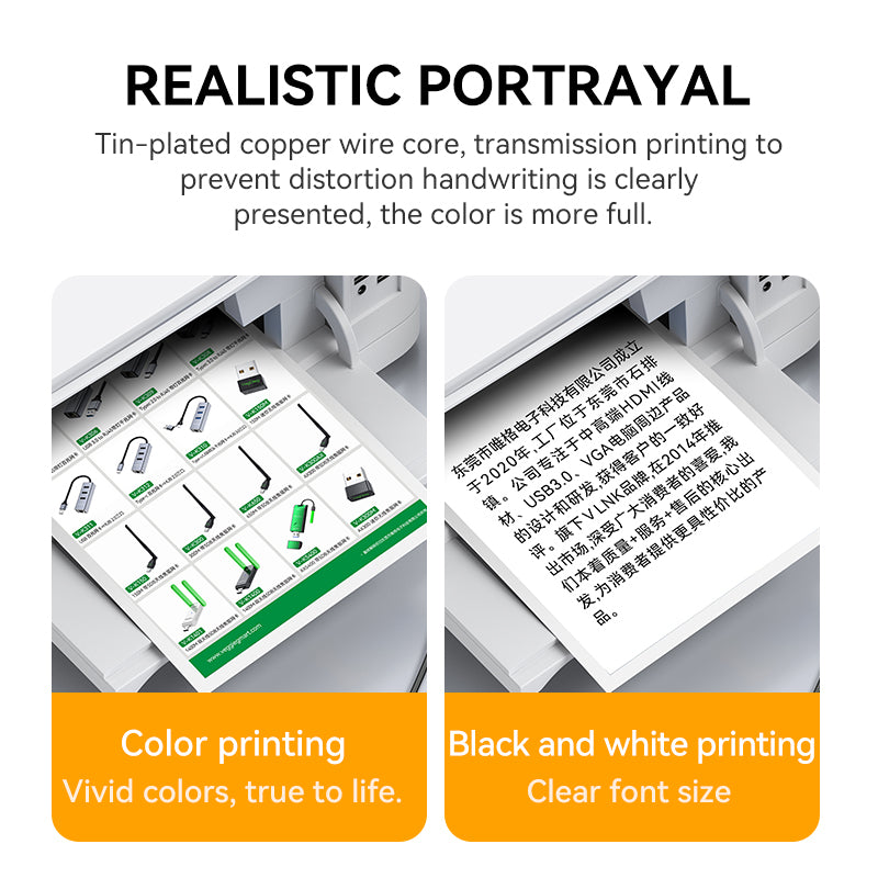 The VegGieg V-U205 is a high-performance USB printer cable designed for stable and high-definition data transmission between computers and USB-B devices such as printers, scanners, fax machines, and more. With built-in signal amplification and multi-layer shielding, it supports extended distances up to 10 meters without signal loss or delay.