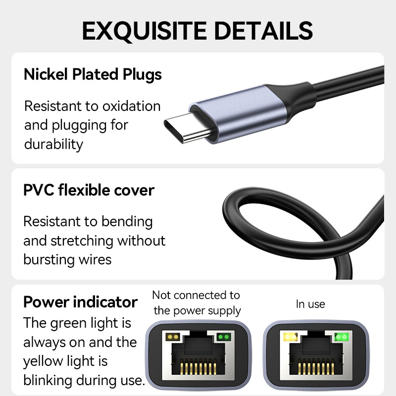 Built with a sleek aluminum alloy shell, it offers superior durability and heat dissipation while maintaining a lightweight, portable form factor. Whether you're streaming, transferring large files, or working on the go, this plug-and-play adapter ensures a rock-solid LAN connection—no drivers required for most systems.