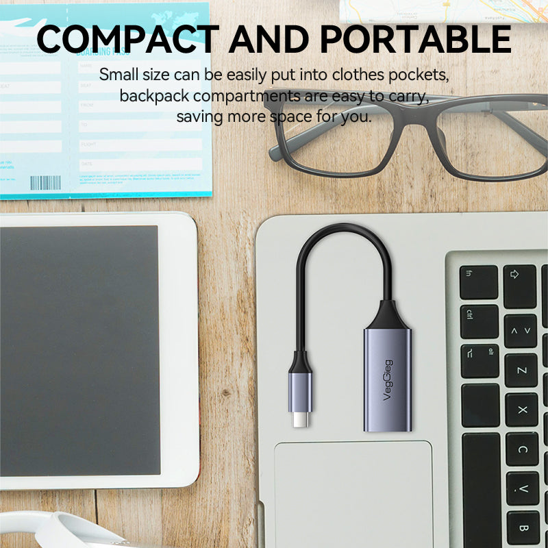 VegGieg USB-C to Ethernet Adapter | 100Mbps & 1000Mbps | Alloy Shell | Plug & Play | Type-C Network Solution
