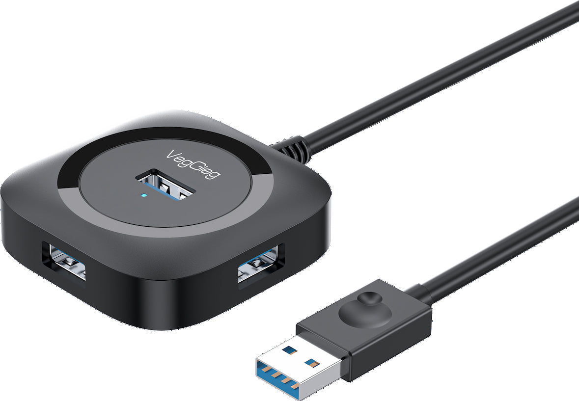 VegGieg 4-Port USB Hub | USB 2.0 & USB 3.0 Options | 1m Cable | External Power Support | High-Speed Data Transfer