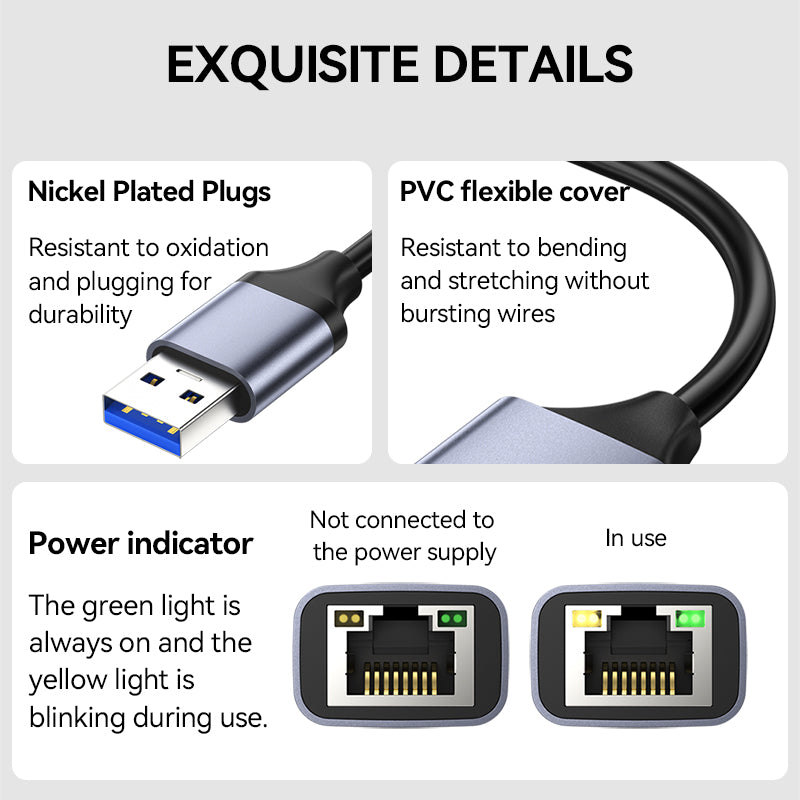 Built with a premium alloy shell for enhanced heat dissipation and durability, it ensures reliable performance even during extended use. Compatible with a wide range of operating systems and fully plug-and-play, it's the perfect solution for laptops, ultrabooks, and desktops without a native Ethernet port.
