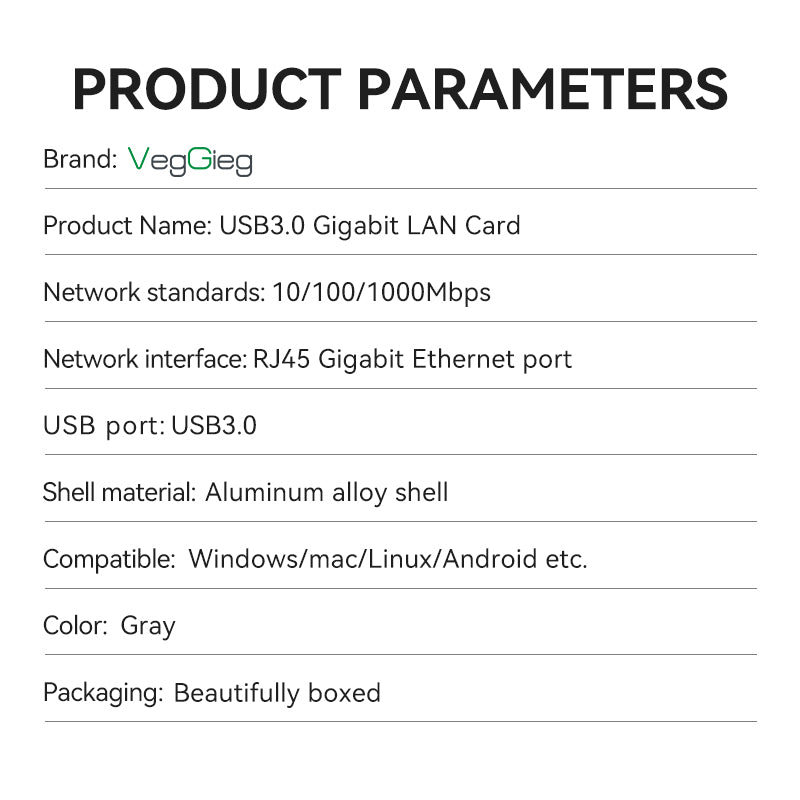 Upgrade your connectivity with the VegGieg USB to LAN Ethernet Adapter, designed for high-performance, durability, and ease of use. Whether you need a 100Mbps Fast Ethernet connection for everyday tasks or a 1000Mbps Gigabit link for high-speed data transfer, this adapter has you covered.