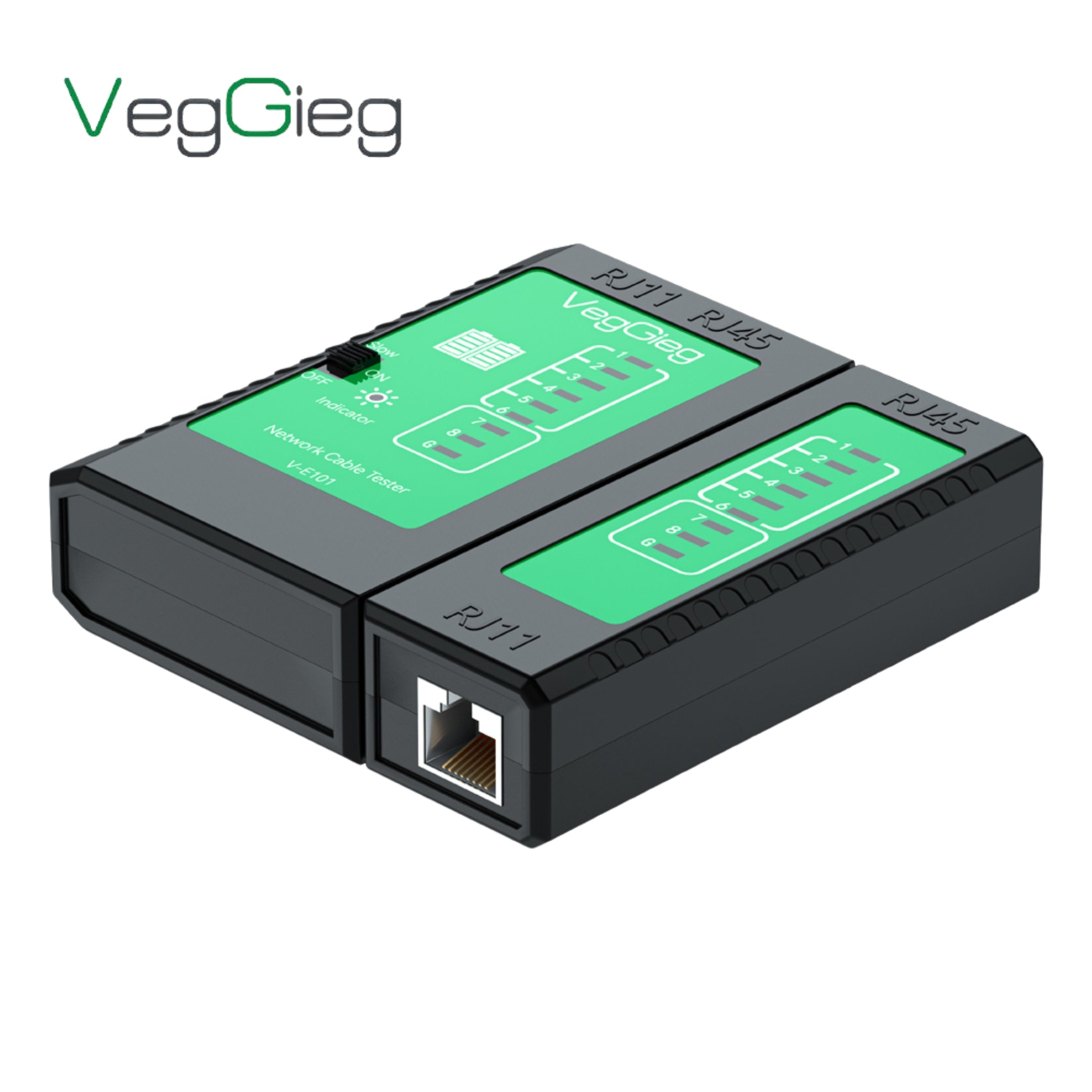VegGieg V-E101 Network & Telephone Cable Tester | Supports RJ45/RJ11 | Automatic Cycle Speed Test | ABS Protective Shell