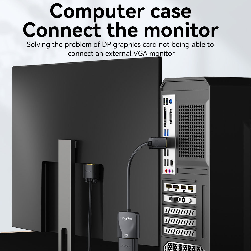 The VegGieg V-Z615 is a reliable DisplayPort (DP) to VGA converter designed to connect modern DisplayPort-enabled devices to VGA projectors, monitors, and displays. Supporting resolutions up to 1080p Full HD, it ensures crisp visuals and stable performance for business, education, or home use.